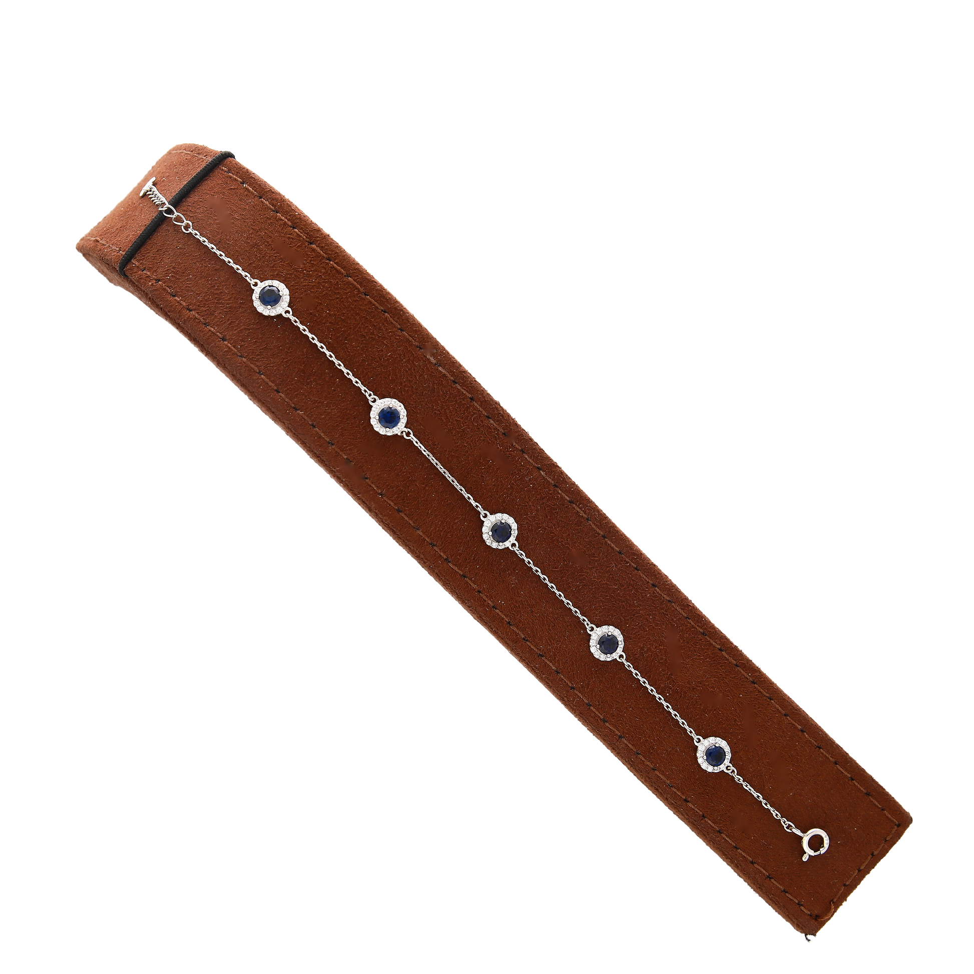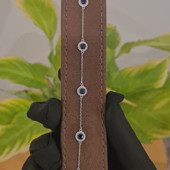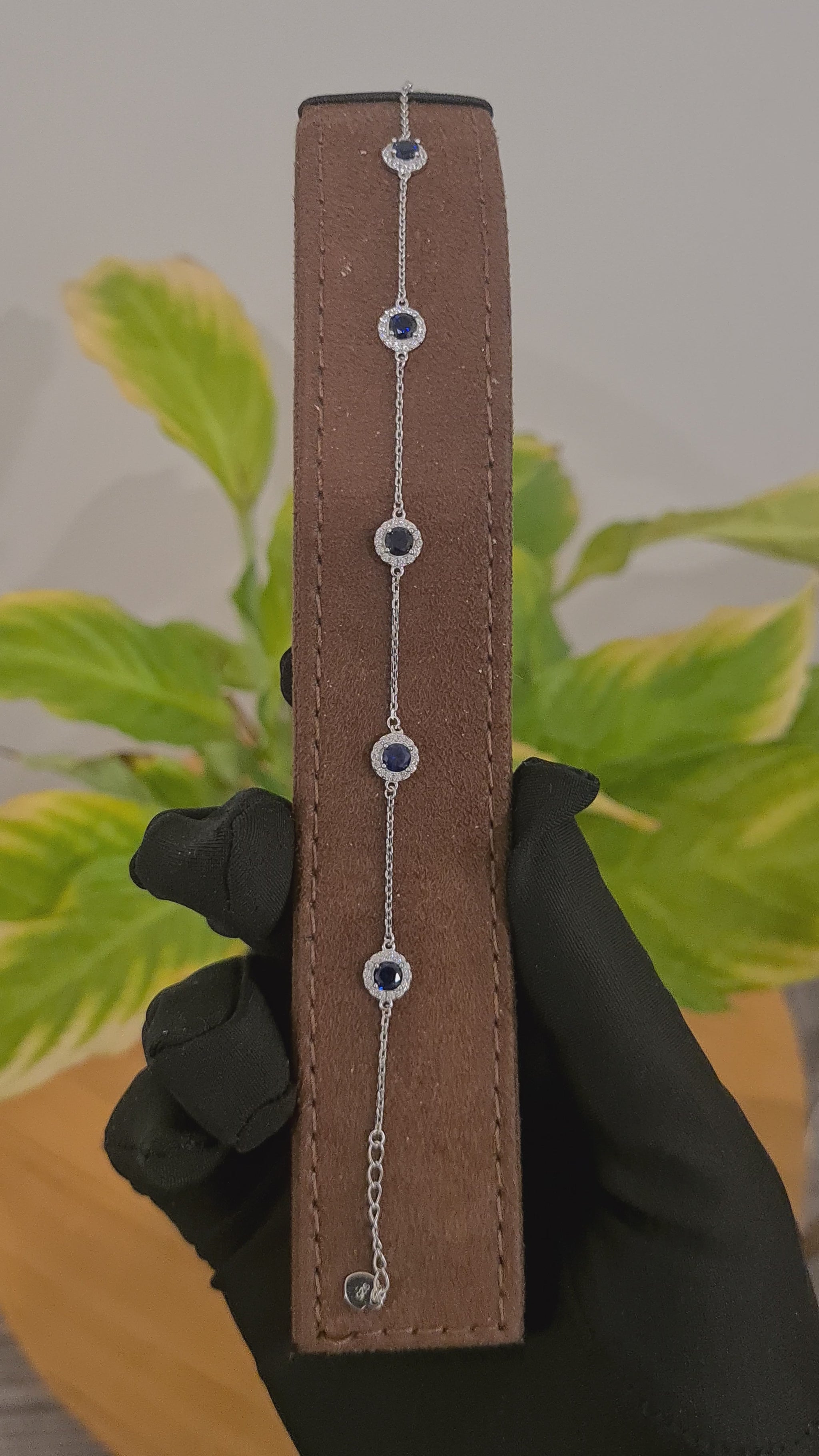 Sterling Silver 925 Round Blue Stone Bracelet - FKJBRLSL10561