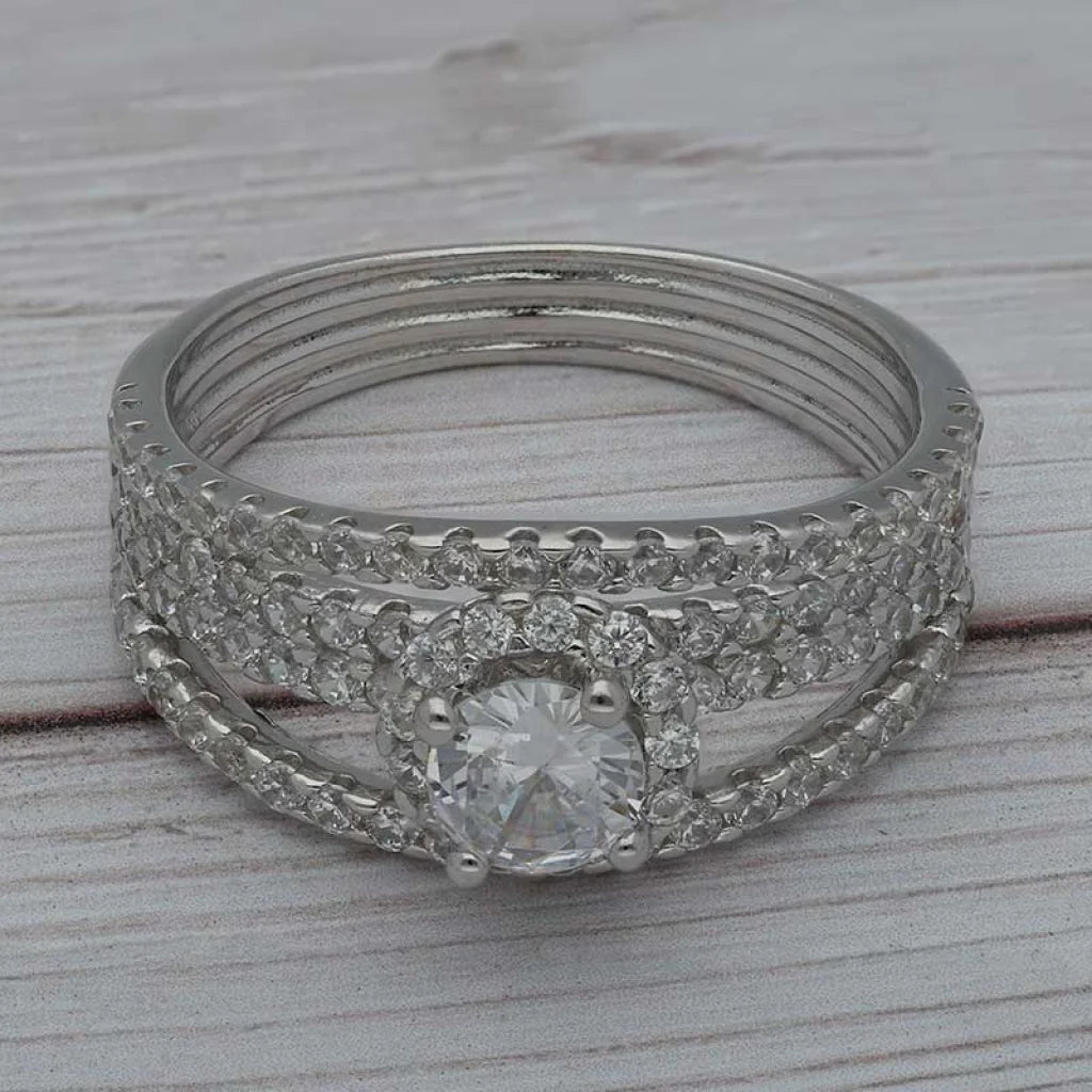 Sterling Silver 925 Round Shaped Solitaire Ring - FKJRNSL3529