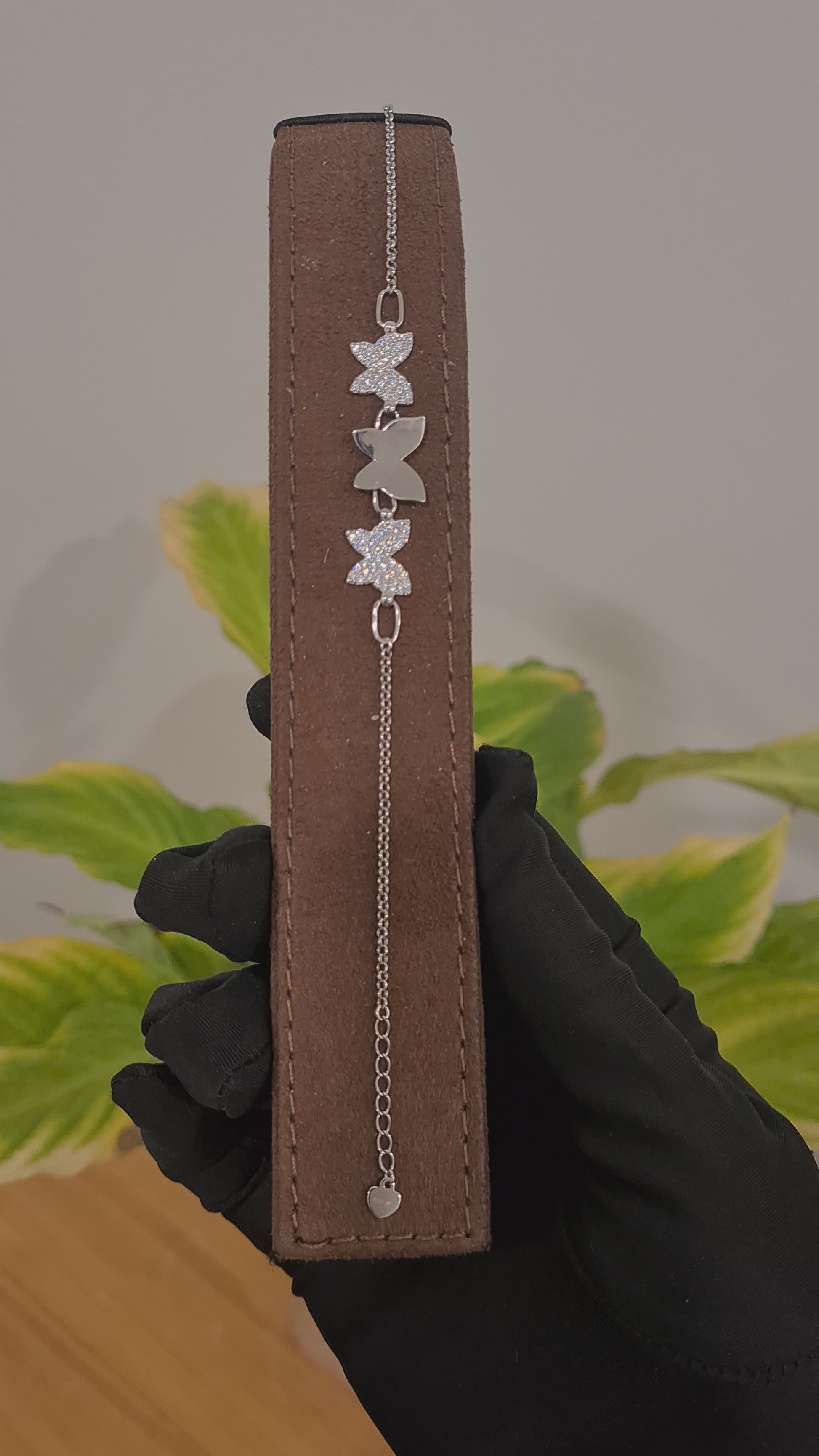 Sterling Silver 925 Triple Butterfly Bracelet - FKJBRLSL10566