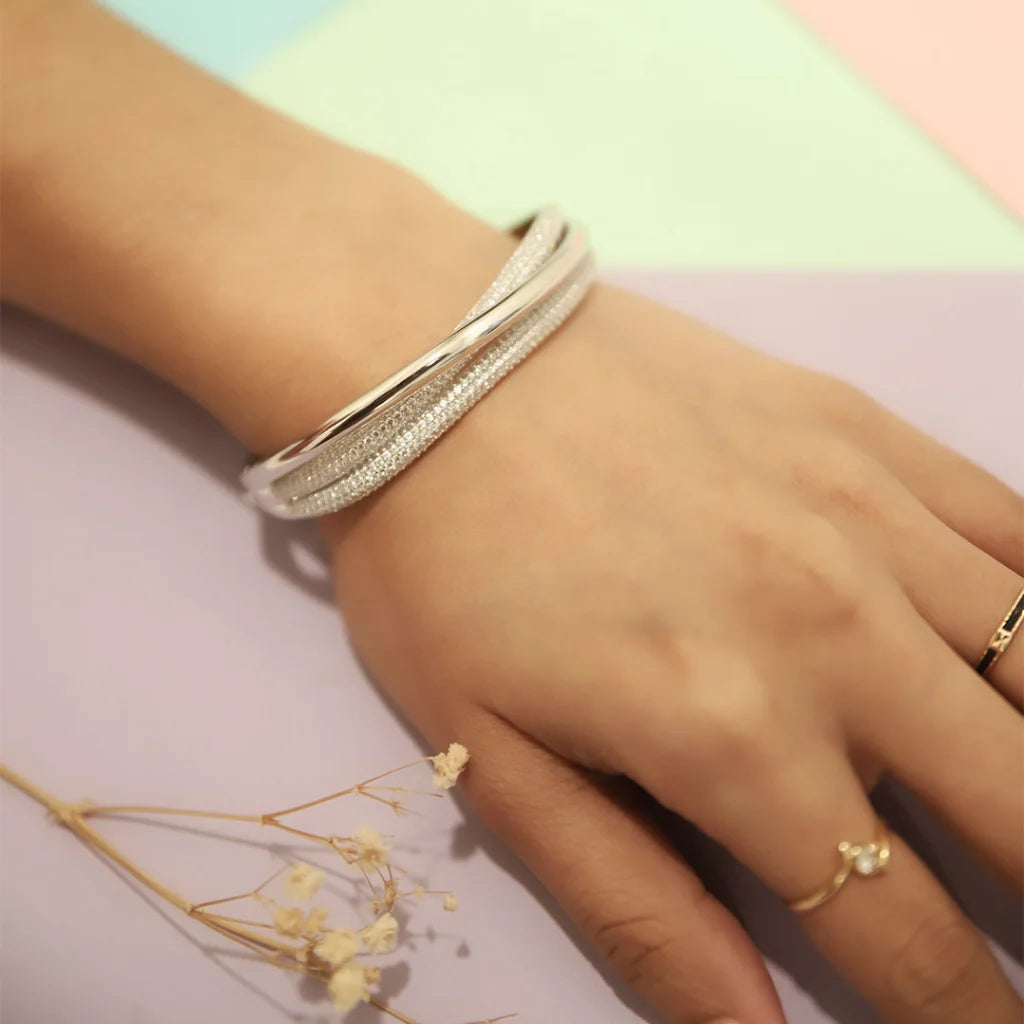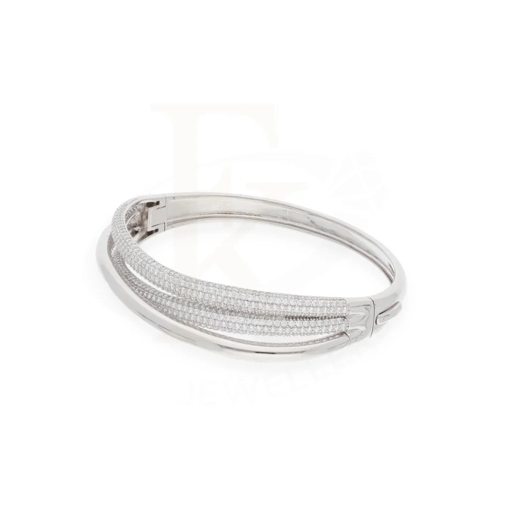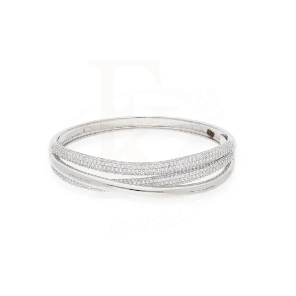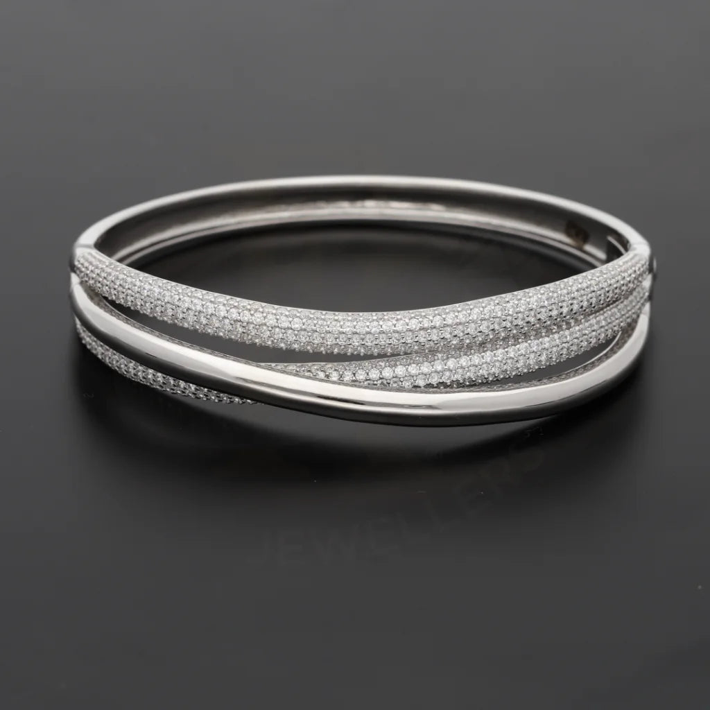 Sterling Silver 925 Waves Cubic Zirconia Bangle - FKJBNGSL7920