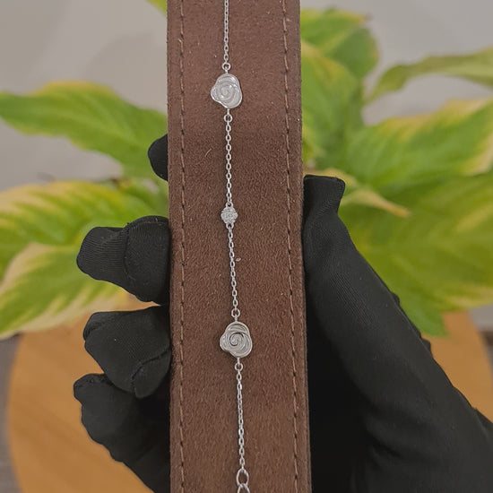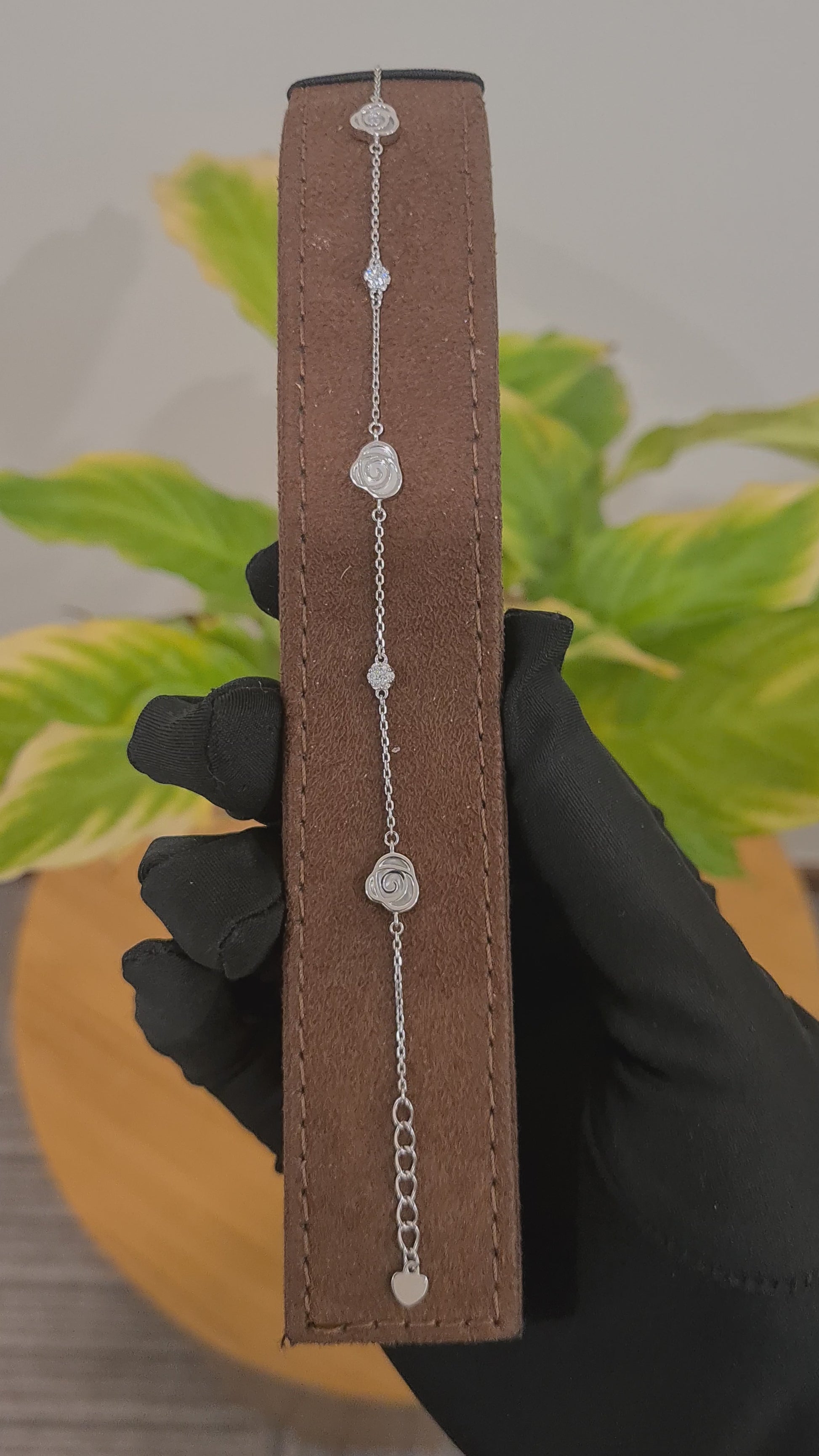 Sterling Silver 925 White Rose Charm Bracelet - FKJBRLSL10565